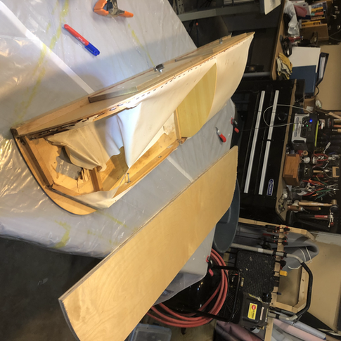 I cut out the new bases and installed them, added additional bracing to the hatches, then restored the wood finish and finally installed new vinyl for the top of the hatches.